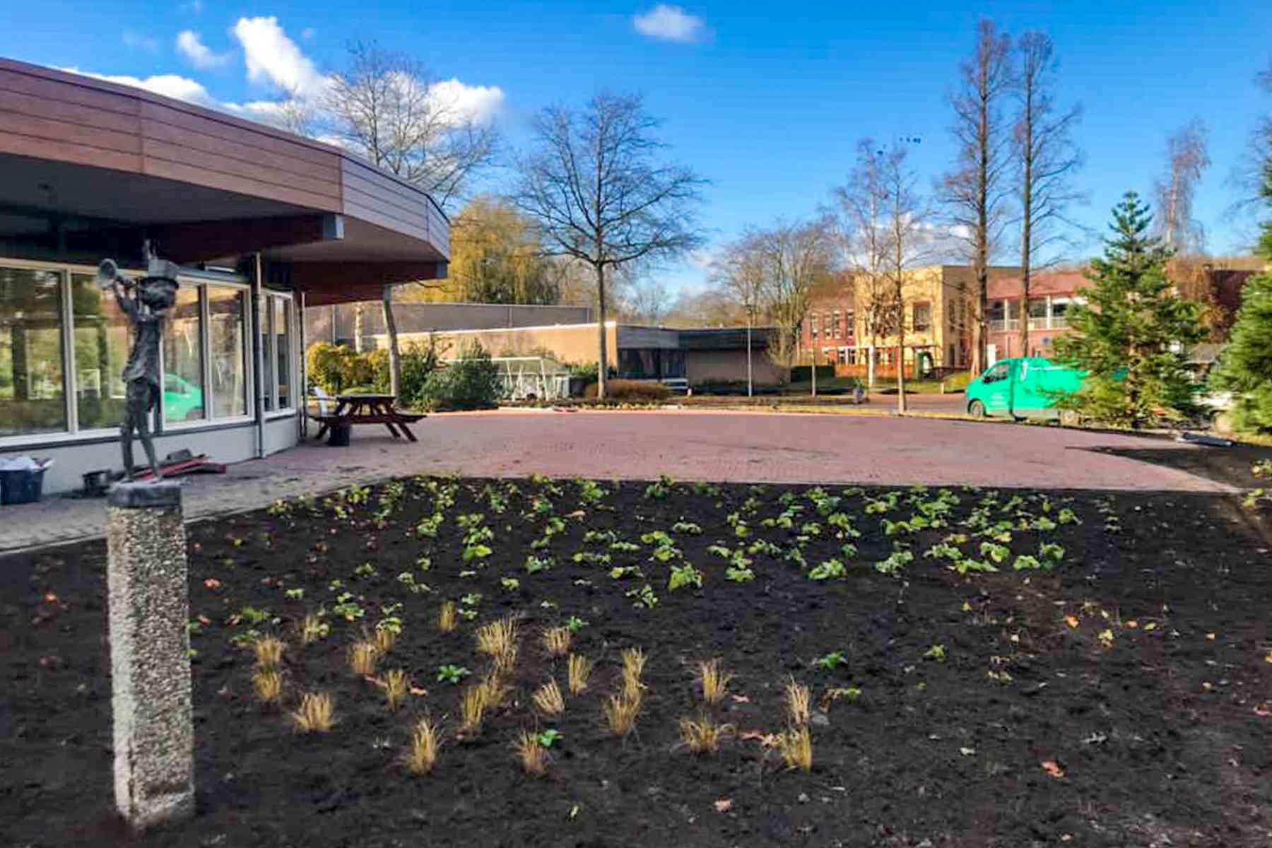 Voor Ipse de Bruggen vernieuwden wij op Landgoed Ursula de tuin rondom het restaurant. Op deze zorglocatie in Nieuwveen wonen ruim 400 mensen met een verstandelijke beperking. Op het landgoed zijn verschillende voorzieningen zoals een manege, kinderboerderij, kapel, zwembad en restaurant aanwezig. Door het vernieuwen van de tuin kunnen de bewoners genieten van een heerlijke maaltijd in een groene omgeving! Wij vernieuwden ook het asfalt op het landgoed.