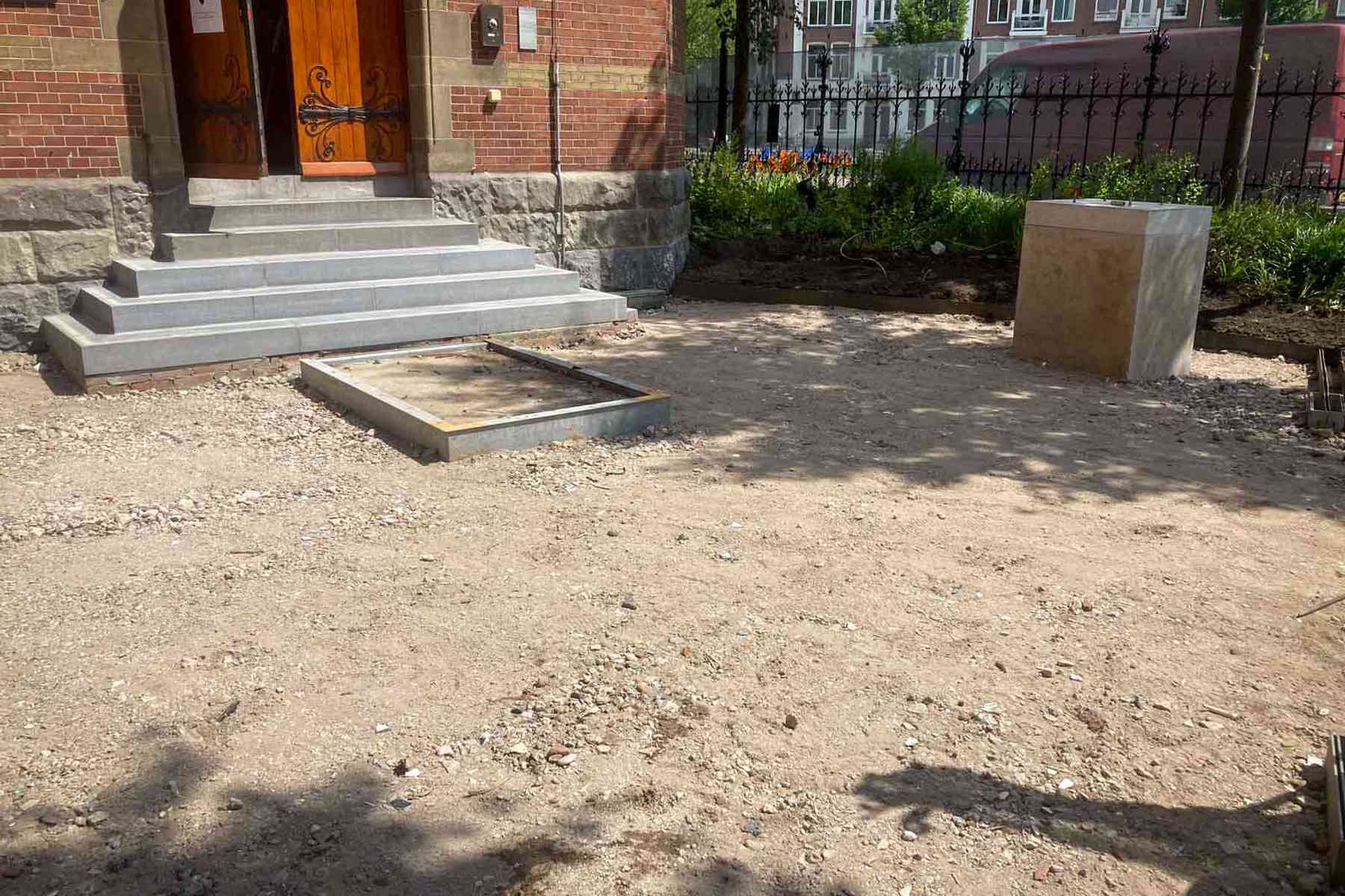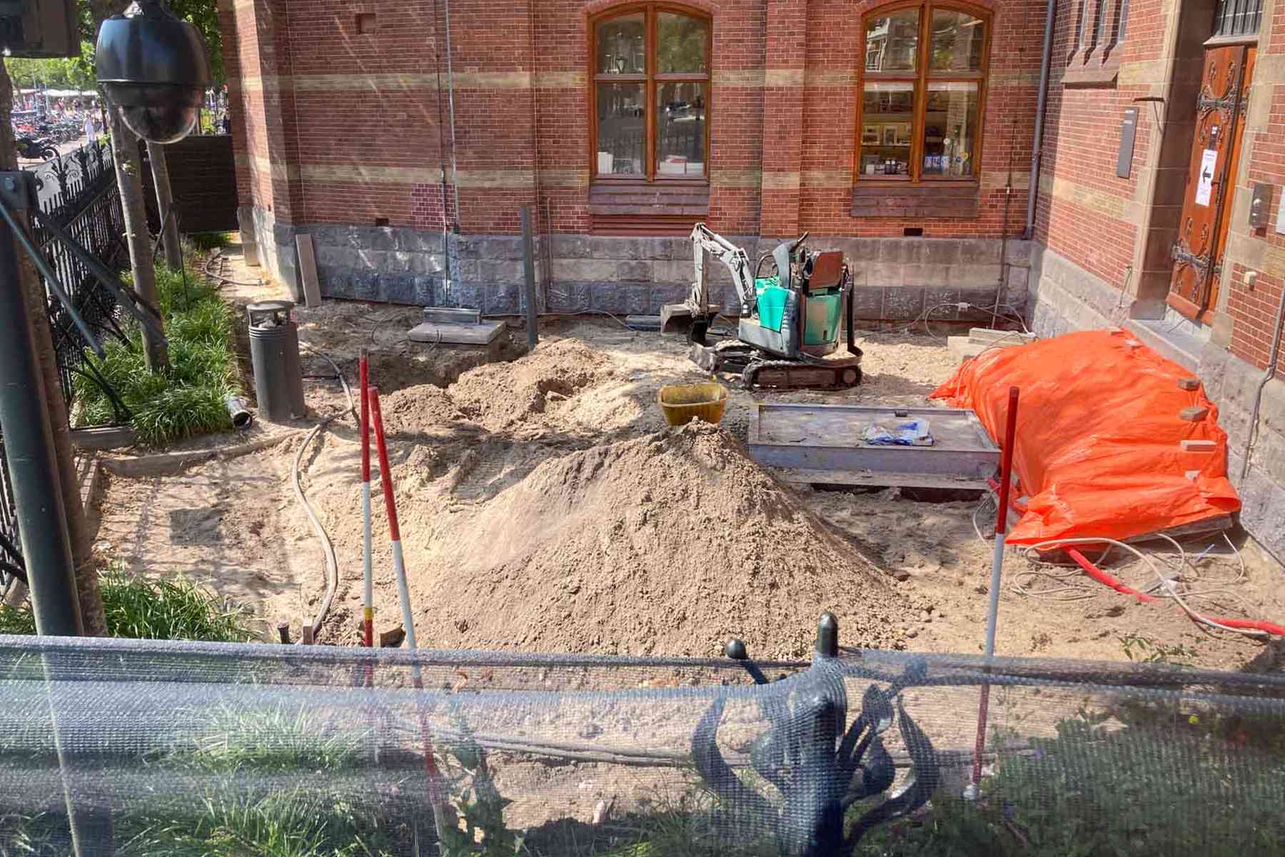 Onlangs vernieuwden wij de terreininrichting van het Rijksmuseum Amsterdam rondom de Teekenschool. Om de Teekenschool rolstoel toegankelijk te maken, voerden wij diverse aanpassingen in de tuin uit. We haalden eerst het oude terrein leeg. Daarna verwijderden we verschillende zitbanken en een sokkel van een Nijntje beeld. Deze plaatsten we na de werkzaamheden van de bouwkundig aannemer weer terug.