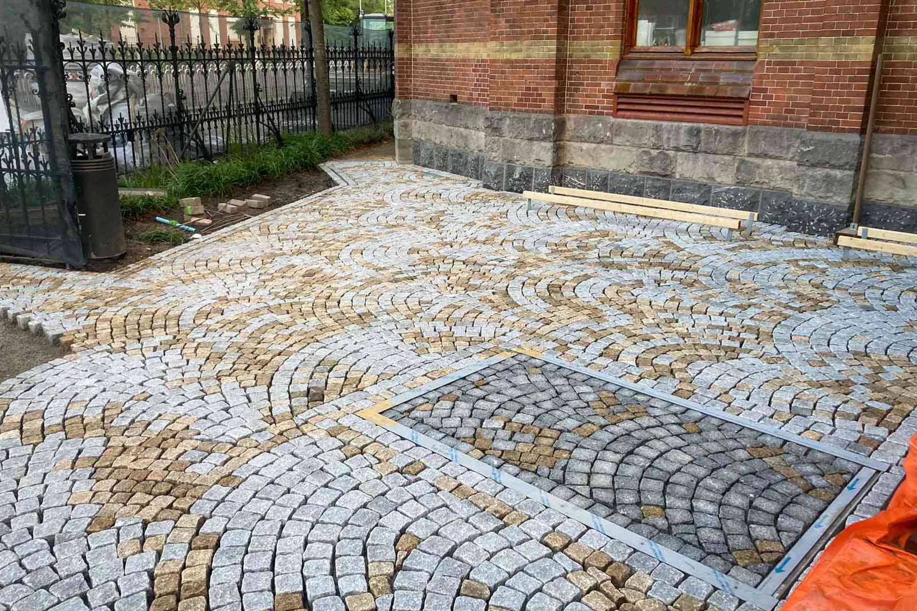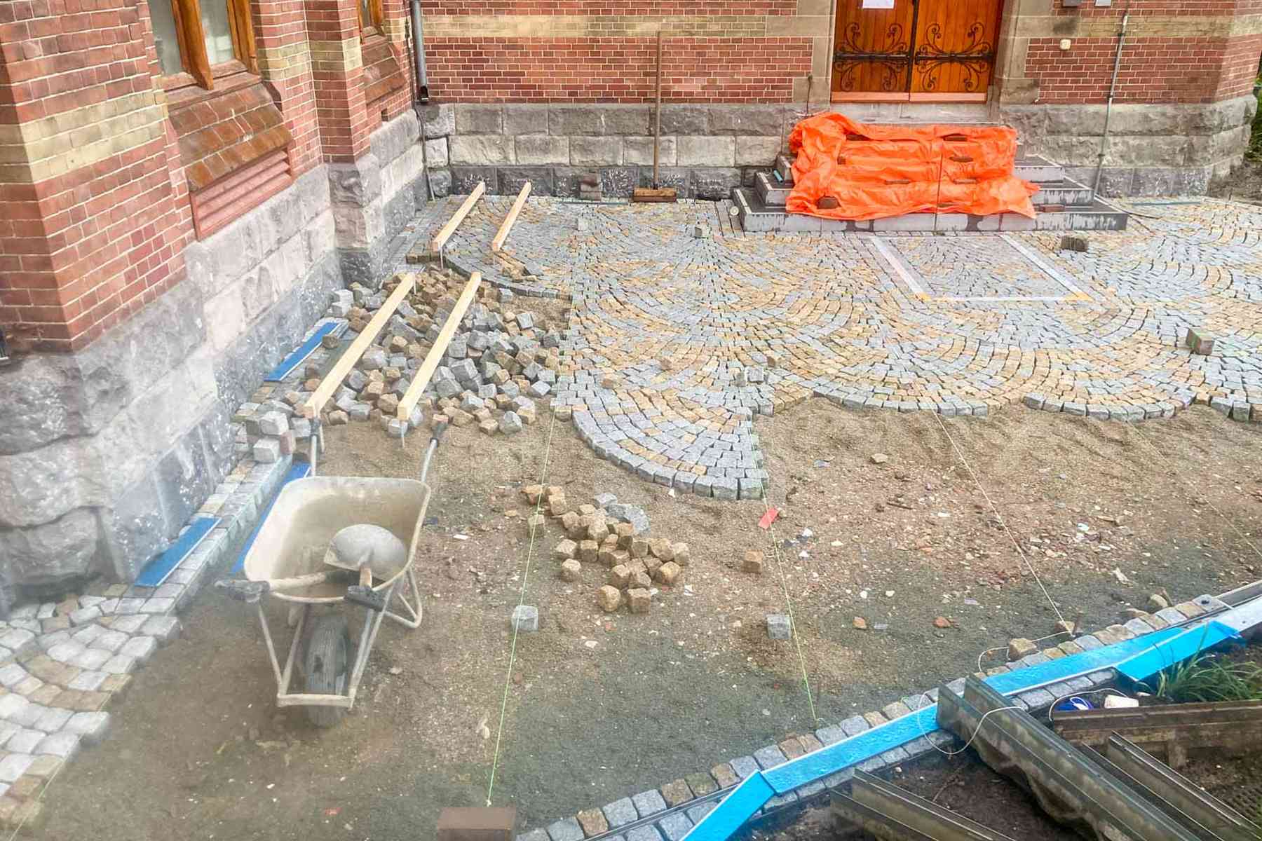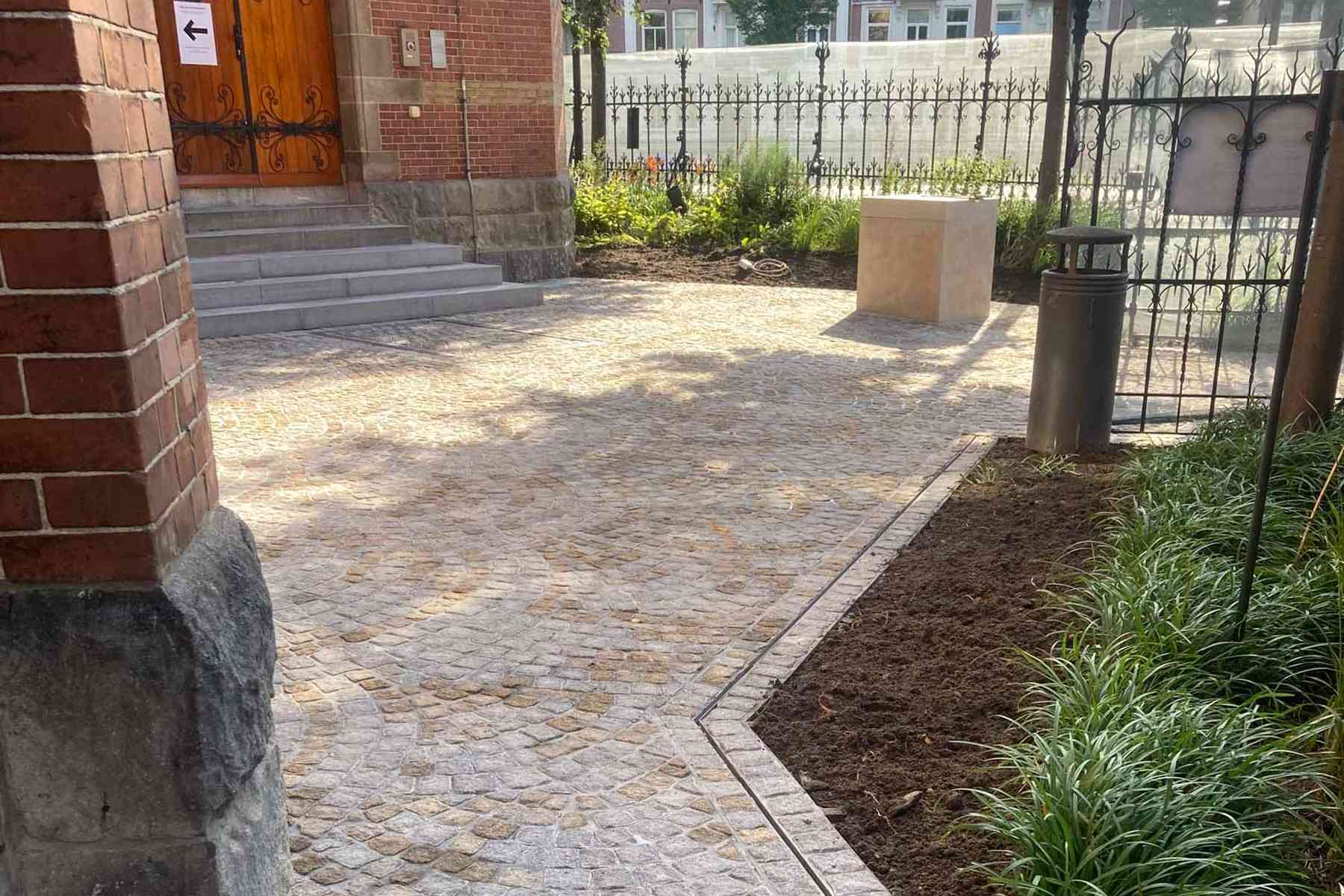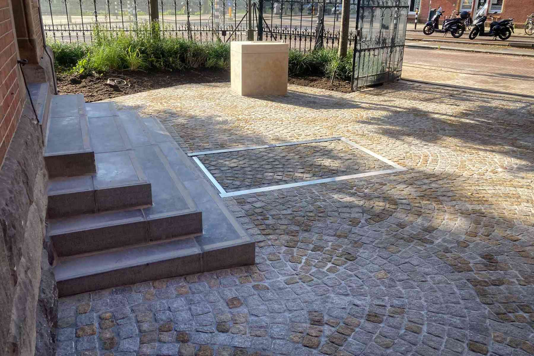 We brachten hier schitterende bestrating aan van Portugees graniet in waaierverband. De nieuwe bestrating is geheel in stijl met de klassieke bouwstijl van de Teekenschool. Ook vernieuwden we de plantvakken waarna de beplanting is aangebracht door de hoveniers van het Rijksmuseum.