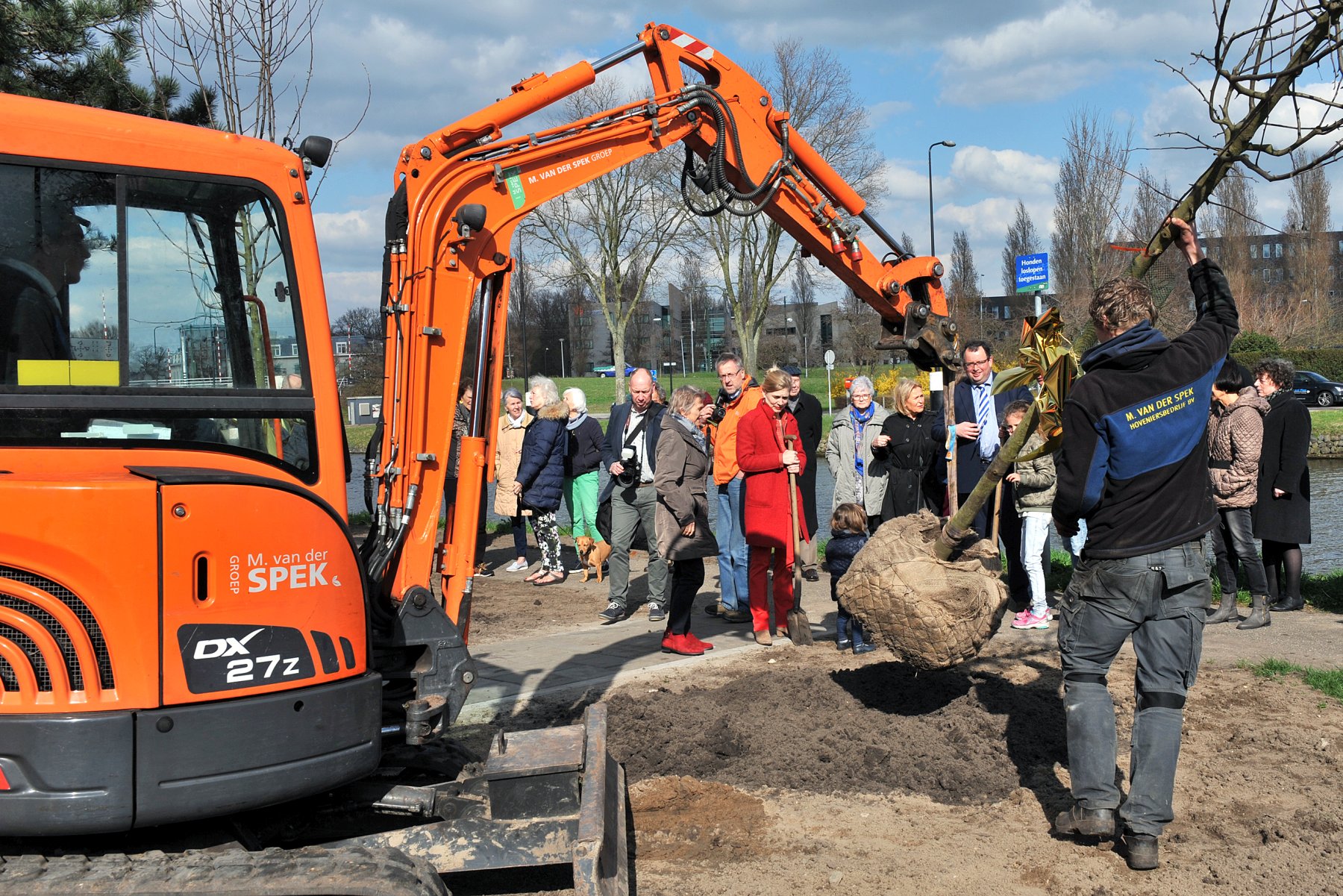 De hoveniers van M. van der Spek GROENPROJECTEN verzorgen in opdracht van de Gemeente Rijswijk al het groen aan de Hoornkade: 17 bomen en 2500 m2 planten. Daarom hebben we op de boomfeestdag samen met de wethouder, bewoners en de gemeente twee nieuwe bomen geplant.