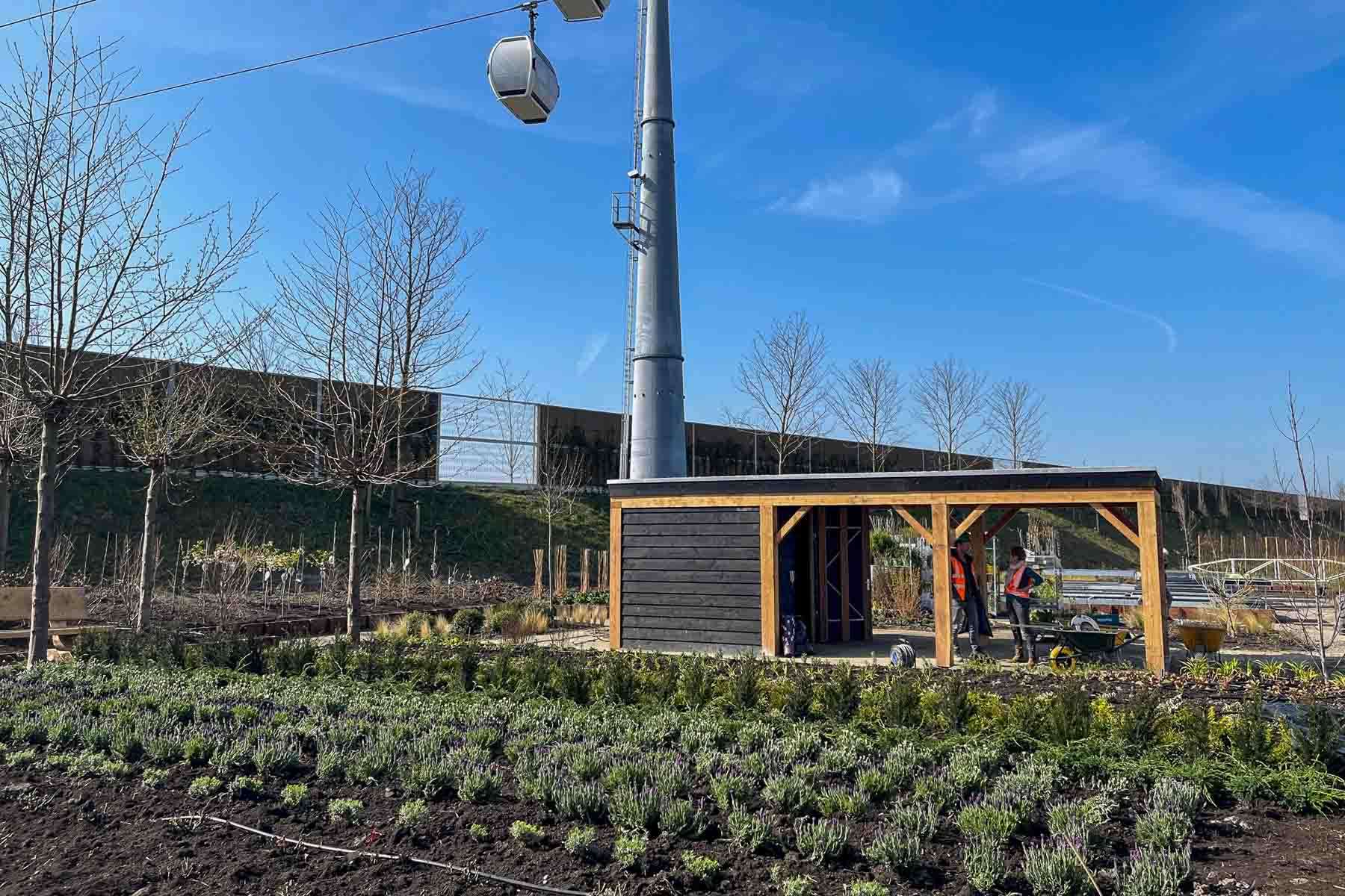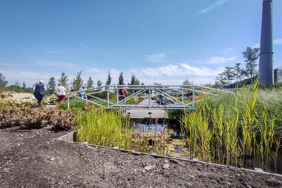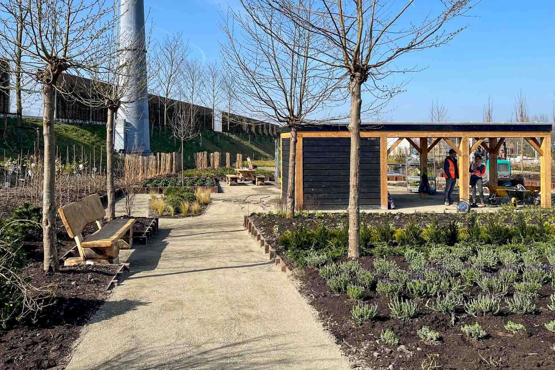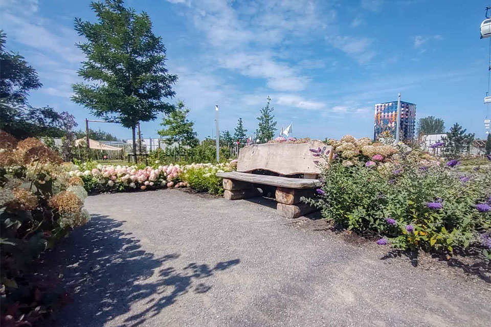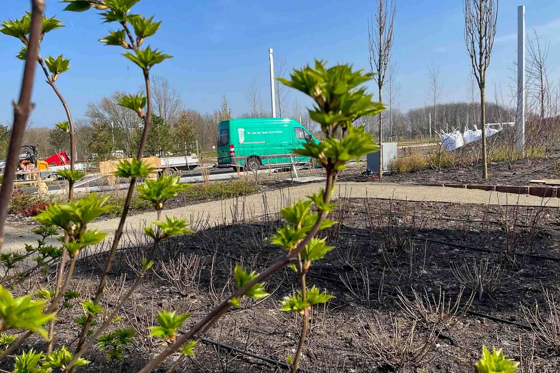 Wij bouwden mee aan de terreininrichting van de inzending ‘From Boskoop'. Wij startten met het grondwerk en hierna volgde de beschoeiing en de paden. Ook plaatsten we een overkapping met een sedumdak met daarop het logo van ‘From Boskoop’. Over het Floriadeterrein loopt een kabelbaan, zo is dus ook van boven goed te zien waar het ontwerp vandaan komt! Van 14 april t/m 9 oktober 2022 is ons werk te bezichtigen!