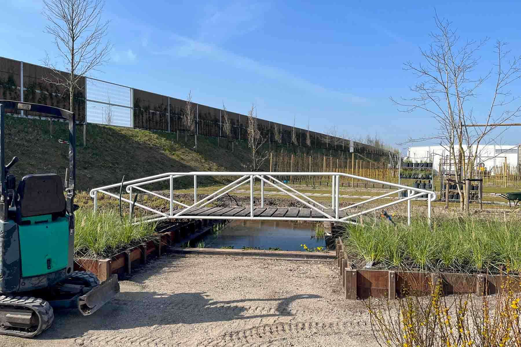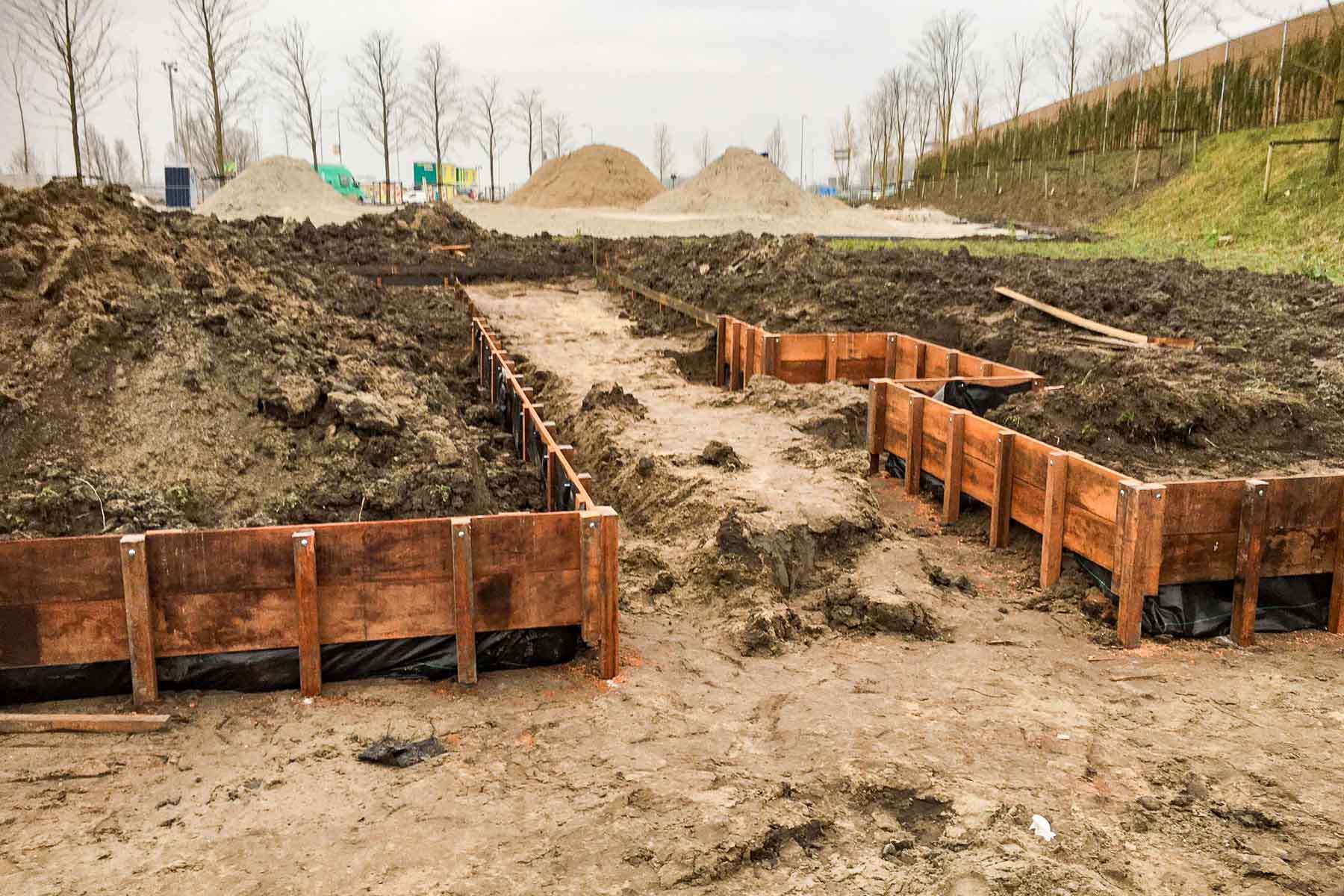 - Werkzaamheden: Grondwerk, aanleg paden, beschoeiing en overkapping.