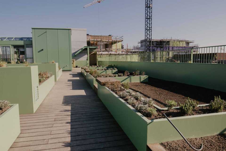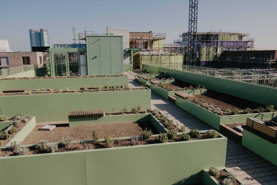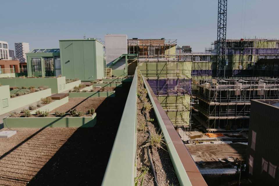 De daken die niet toegankelijk zijn, zijn uitgevoerd als sedumdaken. Deze dragen bij aan waterberging, biodiversiteit en een prettigere leefomgeving.