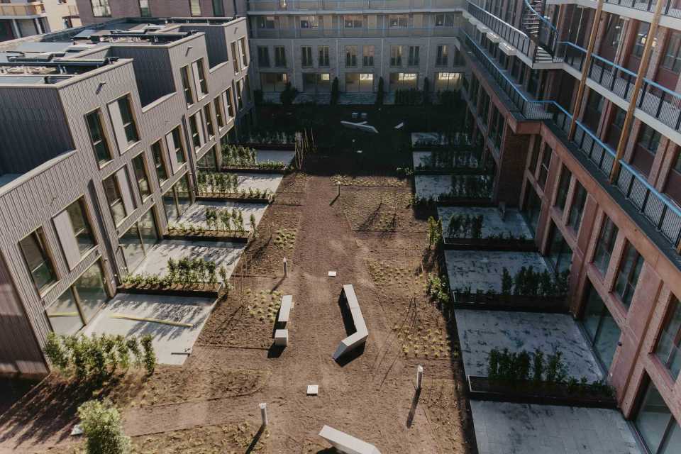 Voor het project De Nieuwe Defensie in Utrecht realiseerden wij in samenwerking met Copijn een omvangrijke en gevarieerde daktuin, verdeeld over het maaiveldniveau en de hoger gelegen daken. Het project wordt gefaseerd uitgevoerd, waarbij de verschillende onderdelen op elkaar aansluiten.