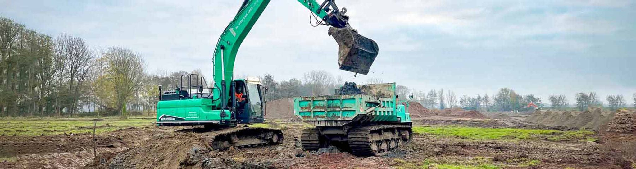 Voor vrijwel ieder grond-, weg- en waterbouwproject is grondverzet het eerste wat er moet gebeuren. M. van der Spek GROENPROJECTEN neemt deze taak als deskundig groenaannemer graag van je over. Met eigen materieel (waaronder trekkers, kranen en shovels) en 3D GPS-aansturing op de machines kan ons ervaren personeel efficiënt en op enkele centimeters nauwkeurig grondverzetwerkzaamheden uitvoeren. Hierbij kan je denken aan het ontgraven van bouwputten, het aanleggen van waterpartijen en het bouwrijp en woonrijp maken van terreinen.