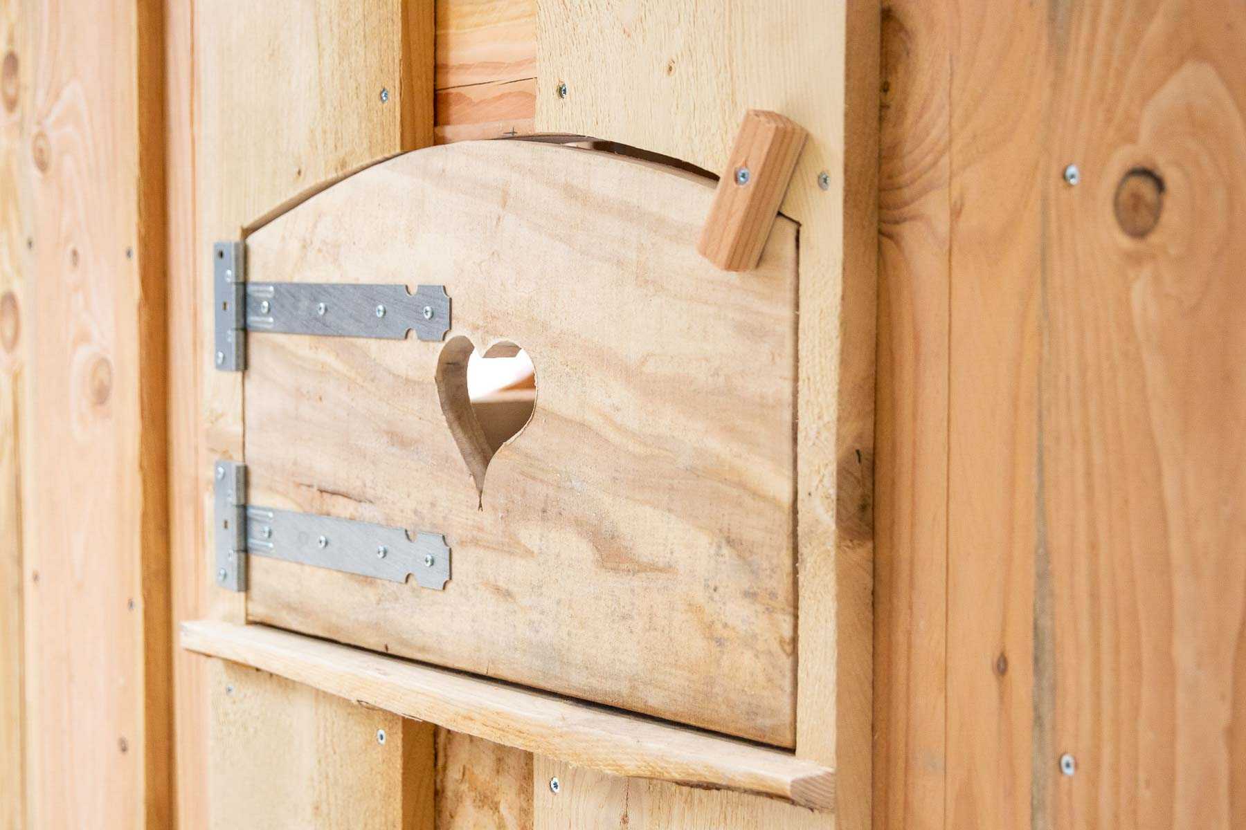 Onze timmermannen steken veel aandacht en vakmanschap in de details van de huisjes. Ze zorgen voor een zorgvuldige afwerking; van raampjes met hartjes tot een sierend randje. Bijna alle ramen, deuren en luikjes van de huisjes kunnen open en dicht door middel van klemmen, haakjes of kettingen.