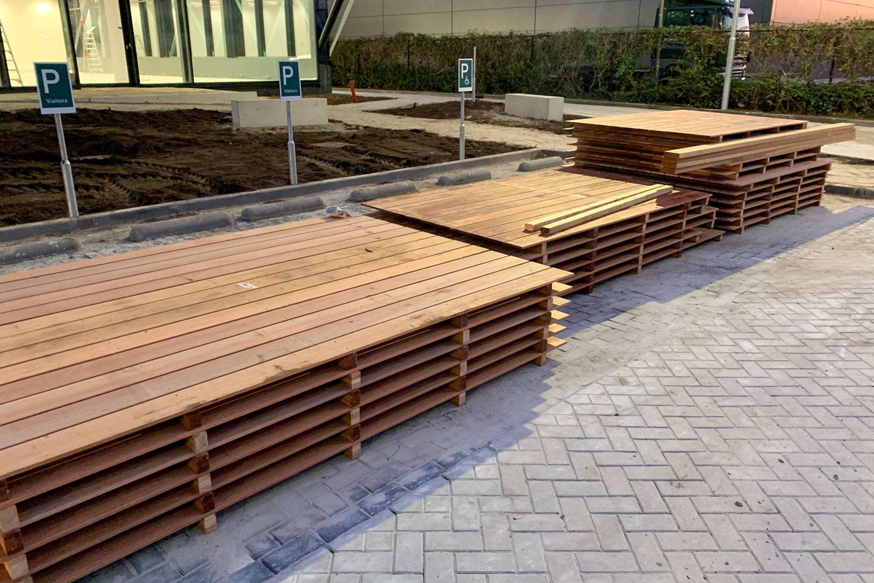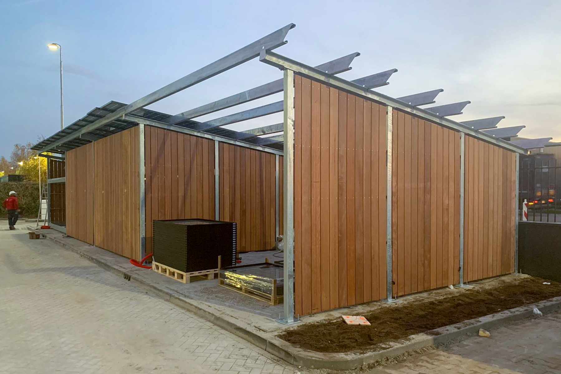 In samenwerking met E-ports hebben wij geprefabriceerde FSC hardhouten bekleding geleverd voor een fietsenstalling in Eindhoven.
