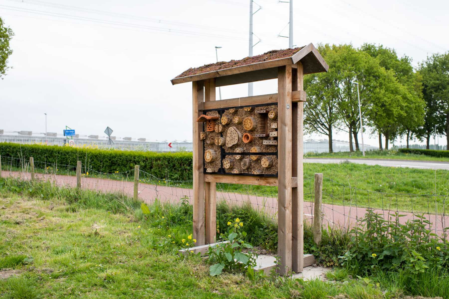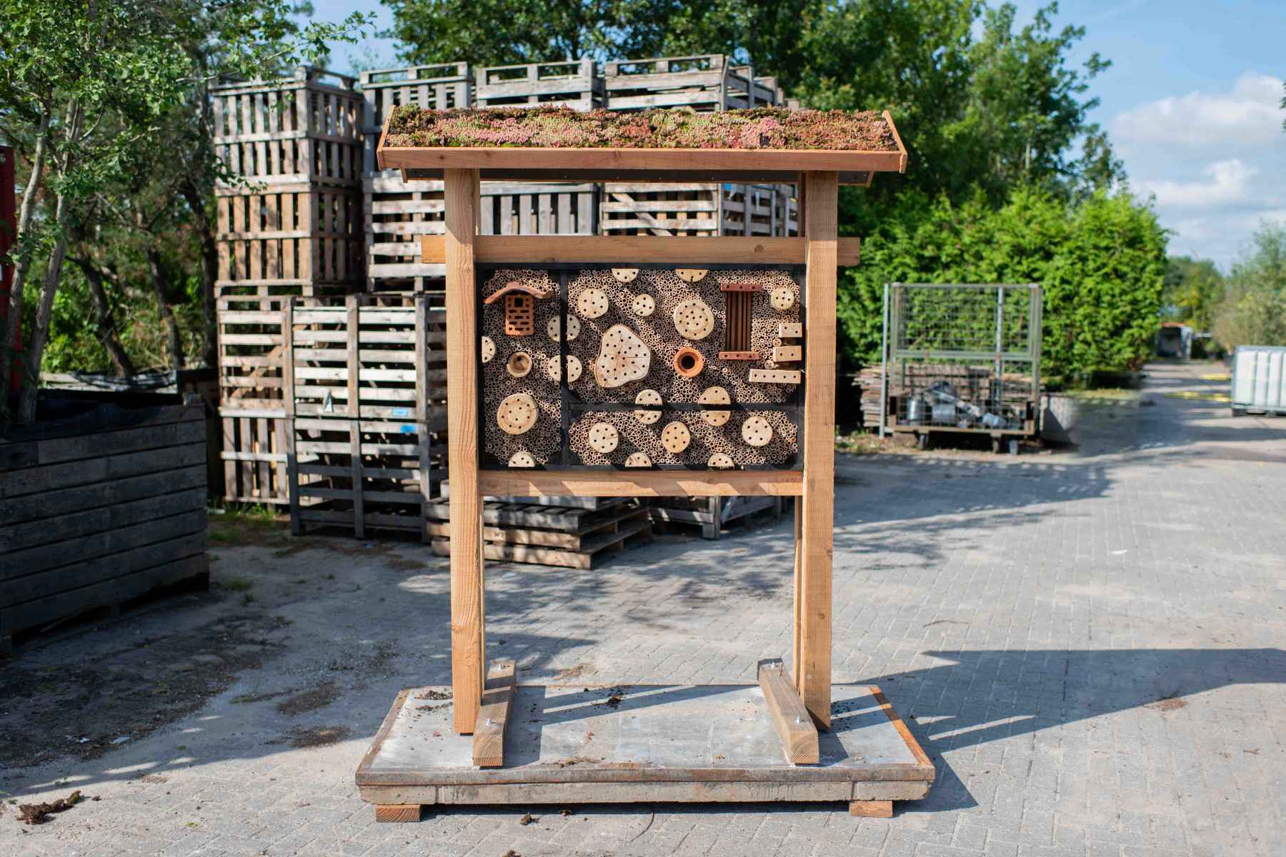 - Omschrijving: Insectenhotel met informatiebord en sedumdak