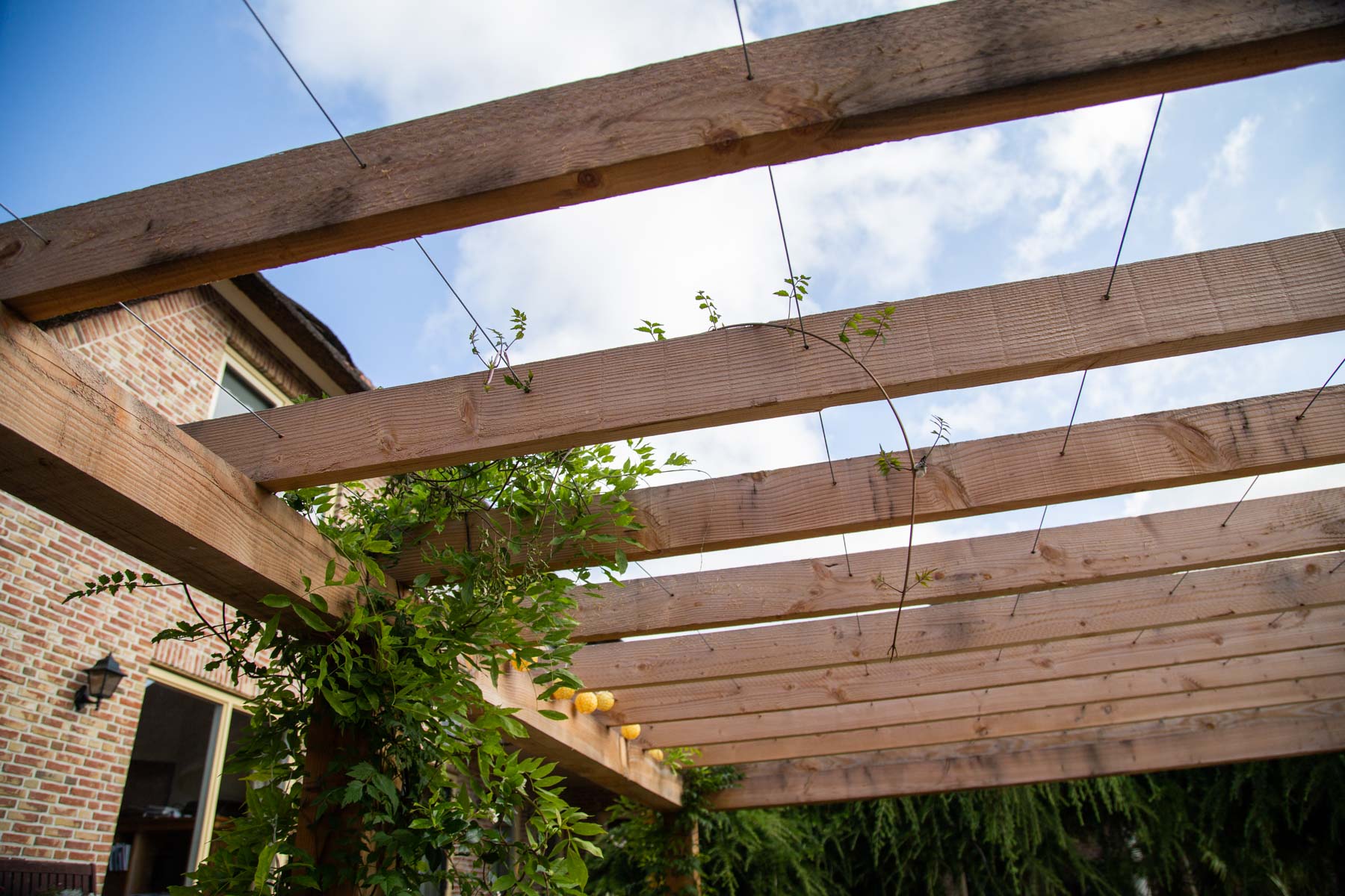 Naast de beplanting, verharding en het houtwerk, plaatsten we ook verlichting aan de hand van een lichtplan. Zo maakten we in de overkapping diverse spots en andere armaturen. Dit zorgt voor een subtiele verlichting in de avonden en brengt tegelijk veel gezelligheid met zich mee. Tussen de beplanting zijn grondspots aangebracht om een aantal mooie bomen extra uit te lichten. En ook dit geeft op zijn beurt een bijzondere touch aan het tuinbeeld. Een compleet plaatje waar je van ‘s ochtends vroeg tot ‘s avonds laat van geniet!