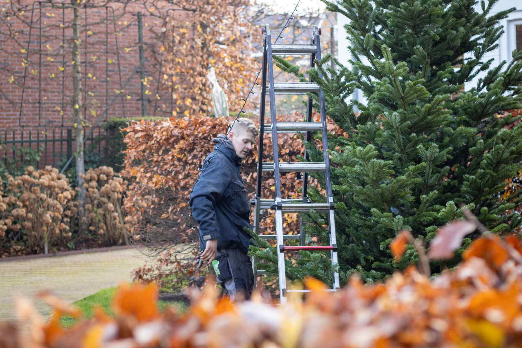 In Rotterdam plaatsen wij ieder jaar een geweldige kerstboom in de tuin van één van onze vaste klanten. In dit geval is de kerstboom wel bijna 7 meter hoog! Een aantal jaar geleden is er een gat in de grond gemaakt voor het plaatsen van de jaarlijkse kerstboom. Zo kunnen we de boom ieder jaar makkelijk neerzetten.