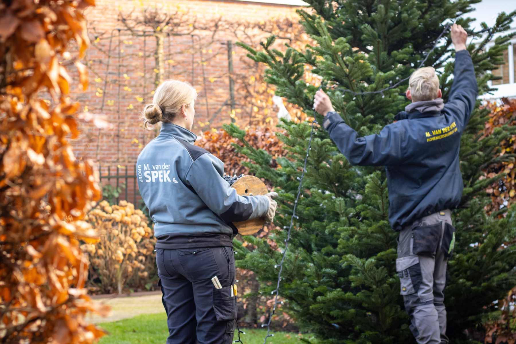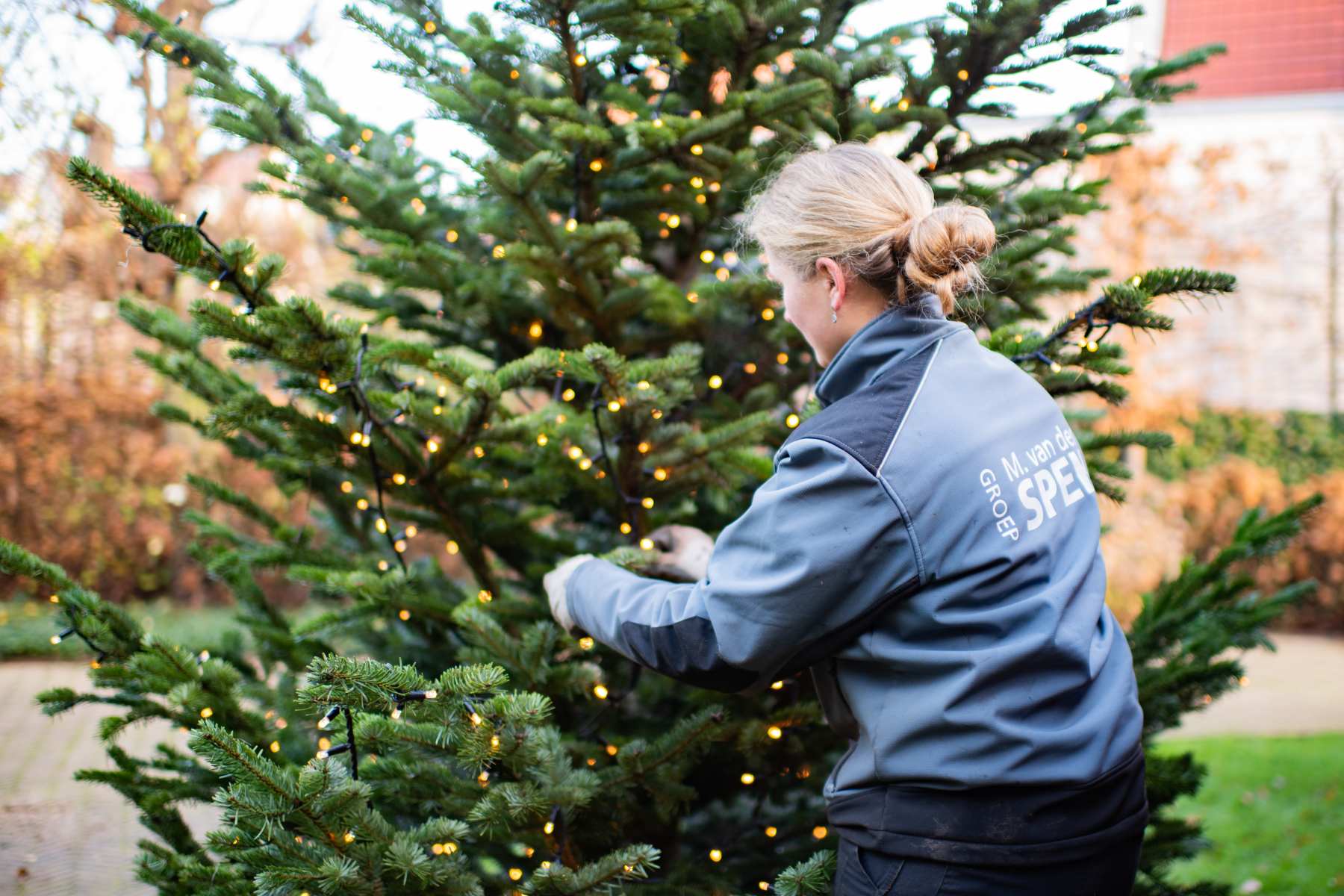 Na het plaatsen van de boom, zijn we aan de slag gegaan met de versiering van de lampjes. Hierbij volgen we de lijn van de boom zodat de lampjes mooi verdeeld zijn! Wanneer de lampjes in de boom zitten, testen we nog even of alles goed werkt. Laat de kerst maar komen!