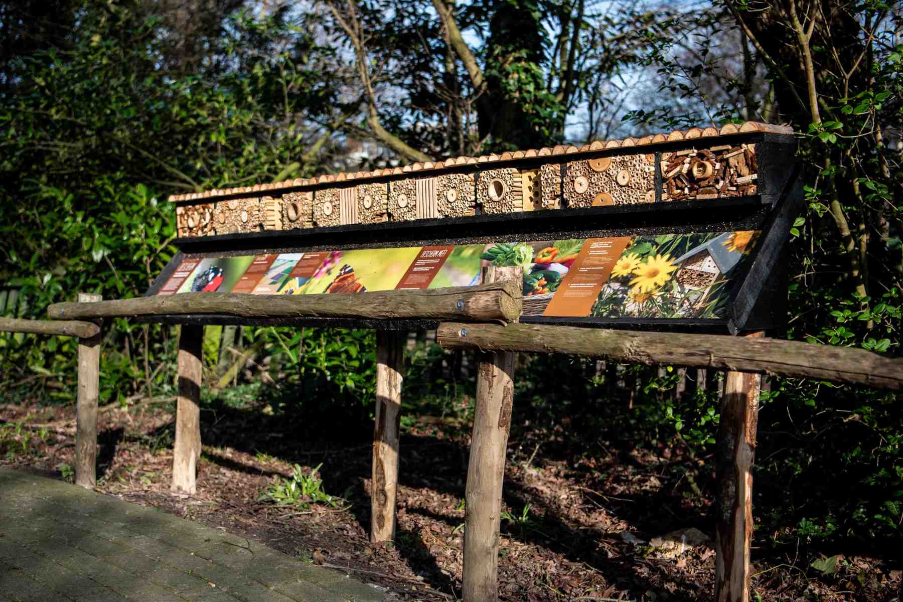 Aan ieder insect is gedacht. Zo zijn er holletjes voor de bijen, kleine kieren voor de lieveheersbeestjes en gaasvliegen en lange, smalle gleuven voor de vlinders. Insecten zijn van onschatbare waarde. Ze bestuiven bloemen en helpen ongedierte zoals de bladluis te bestrijden. Daarnaast zijn insecten op hun beurt weer een voedselbron voor de vogels. En zo maakt de dierentuin de voedselkringloop rond.